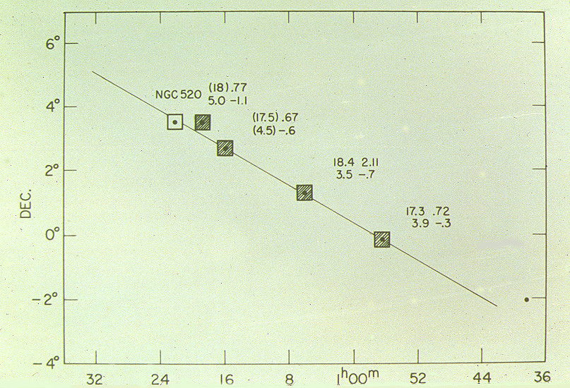 NGC 520 aligned with 3 quasars